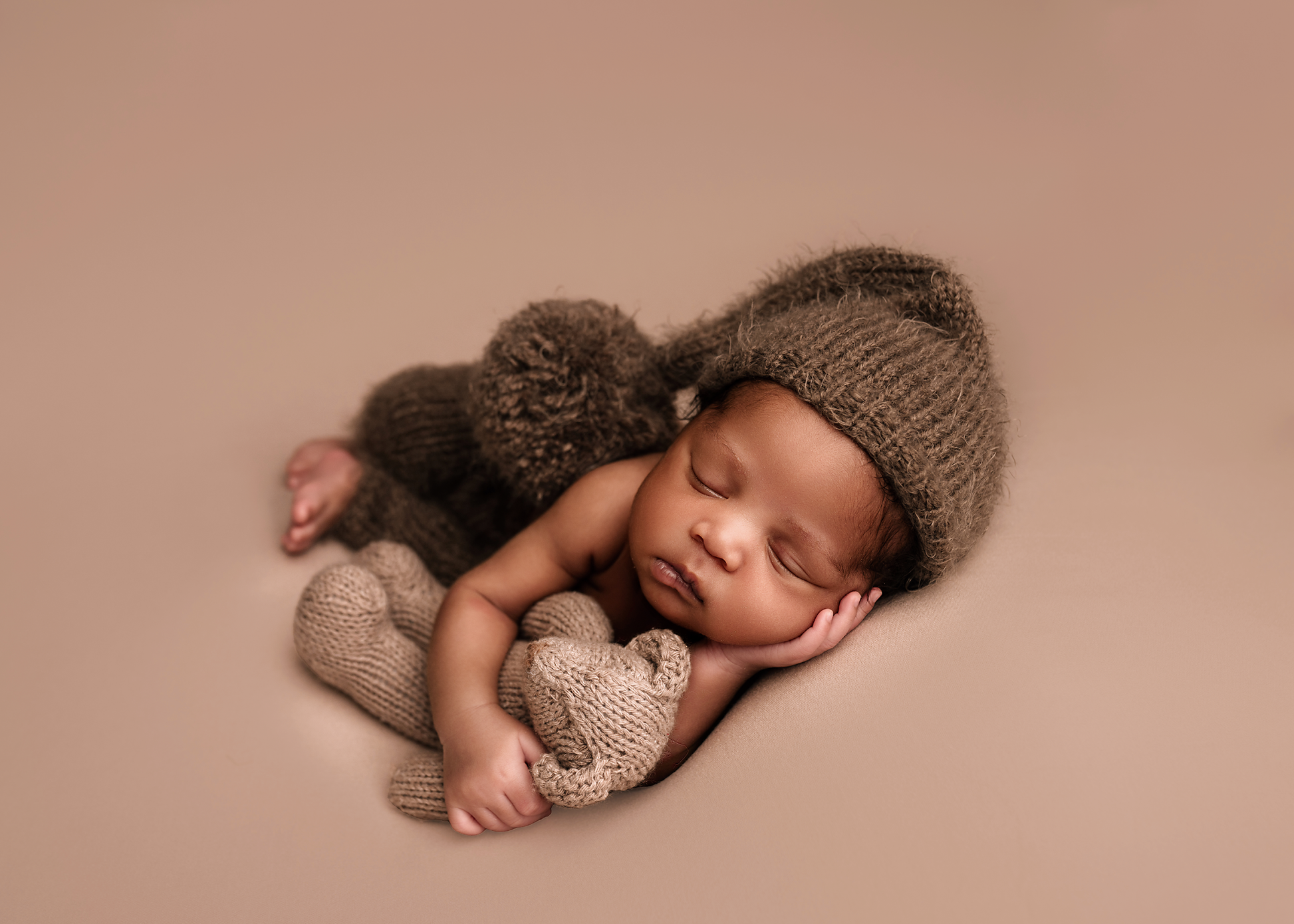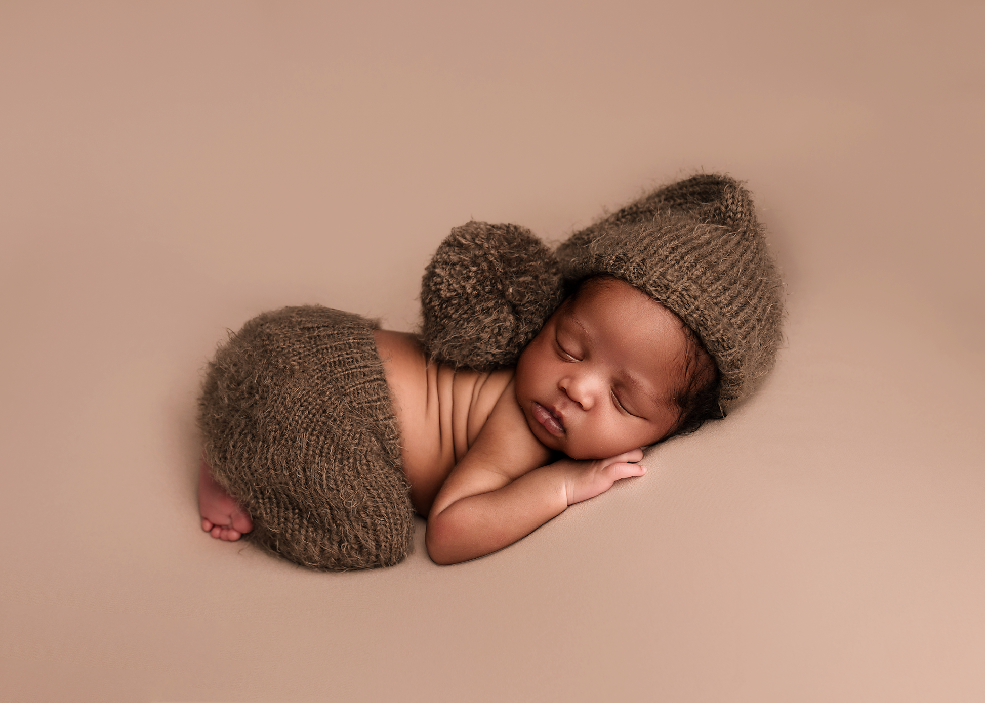 Fuzzy pants with one pocket on the back & matching sleepy hat (but there is option for pom pom pixie hat or plain bonnet)