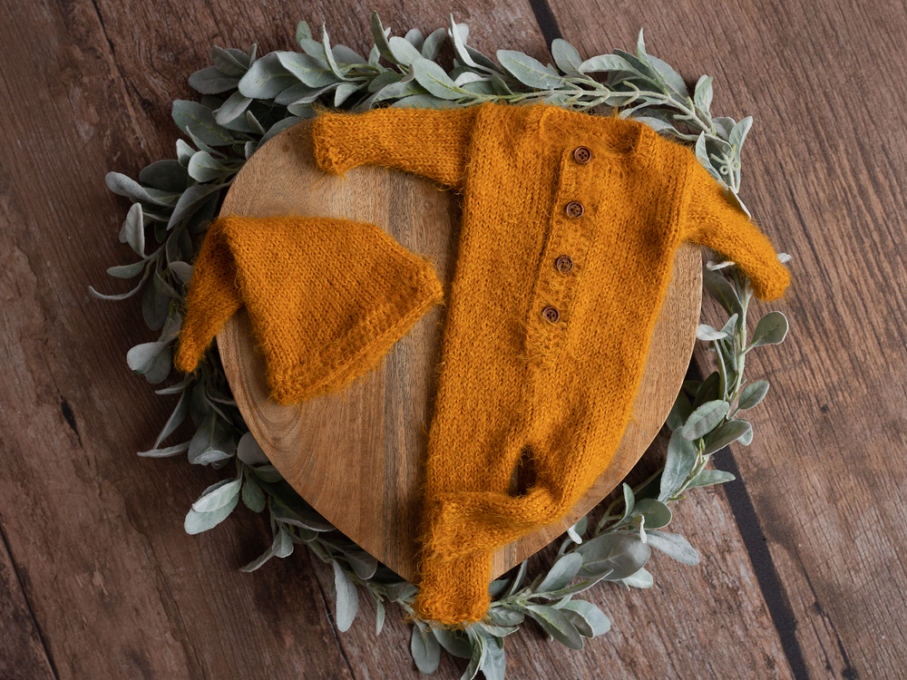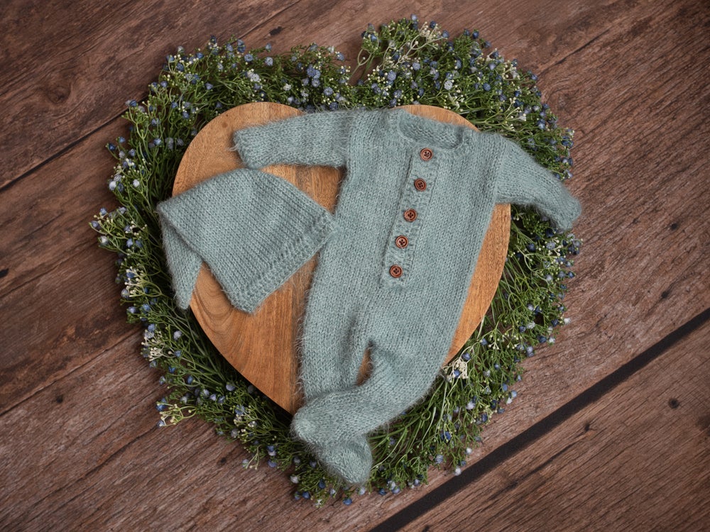 Super soft fuzzy romper with matching sleepy hat/teddy bear bonnet
