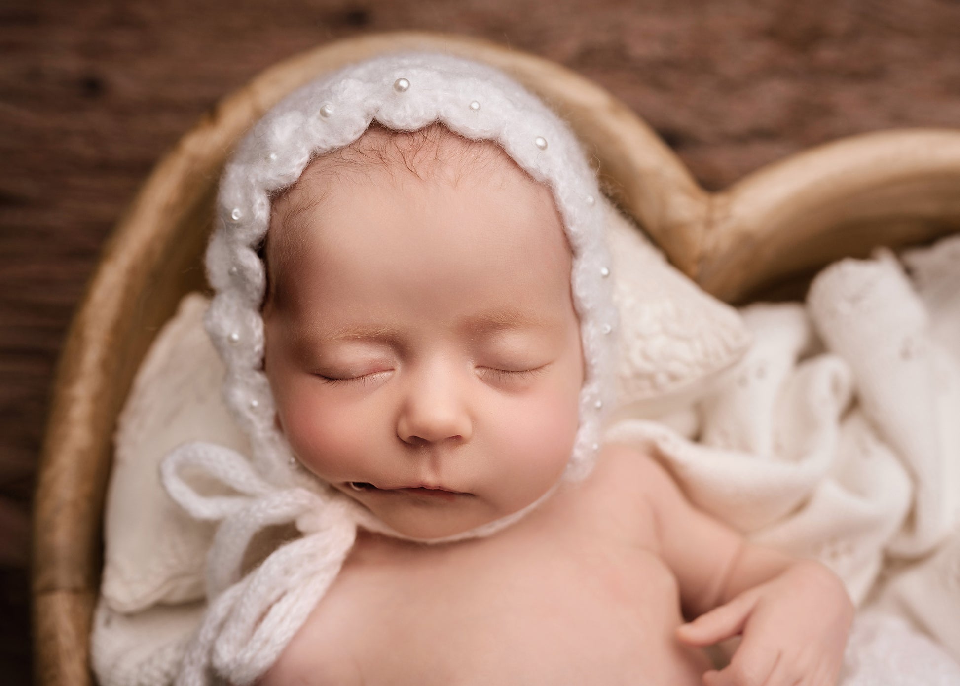 Newborn bloomer with matching patterned leg warmers and detailed bonnet