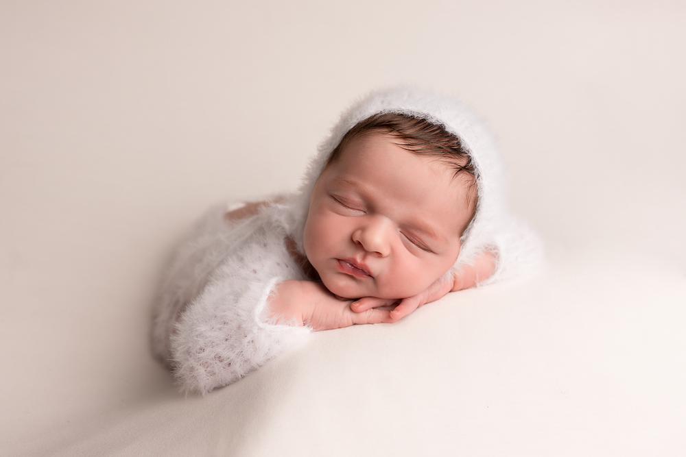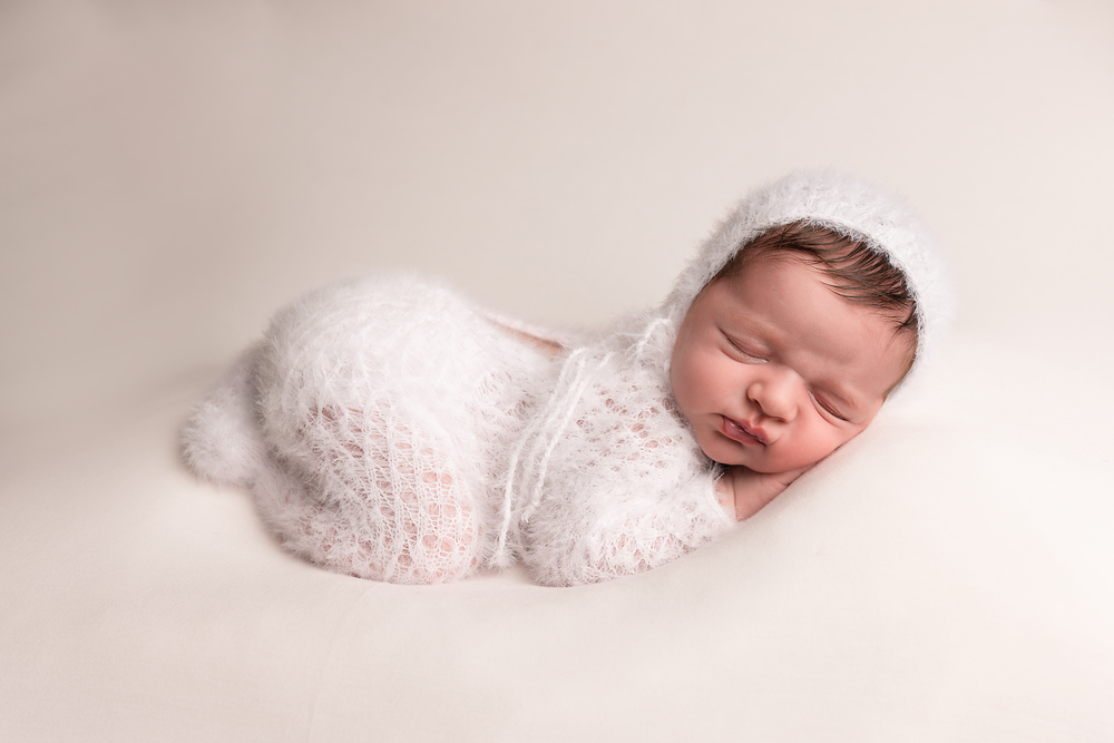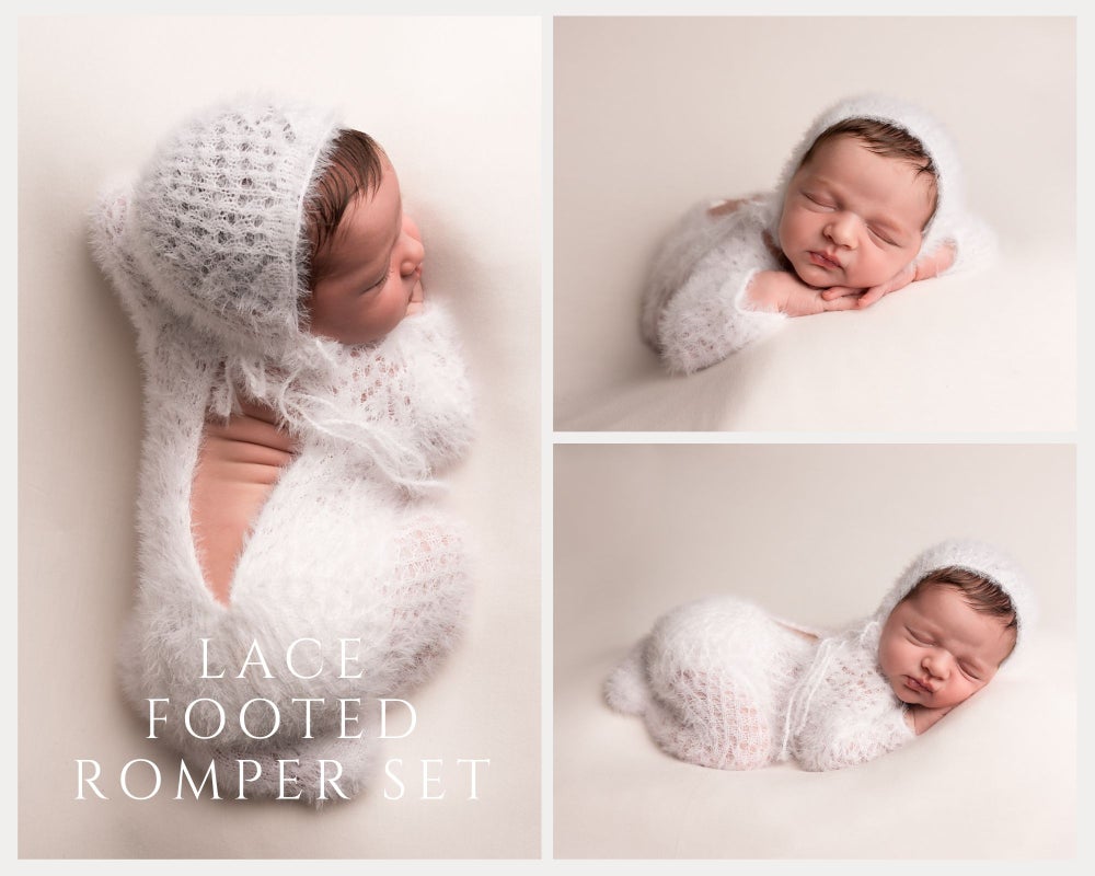 Very soft, delicate and fluffy footed romper with matching bonnet for newborns