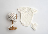 Delicate, soft and fuzzy romper set & bonnet & ankle socks