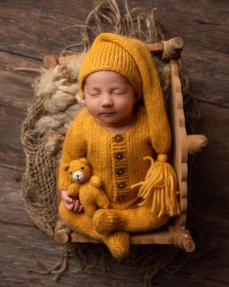 Newborn pyjamas with matching sleepy hats AND teddy bear