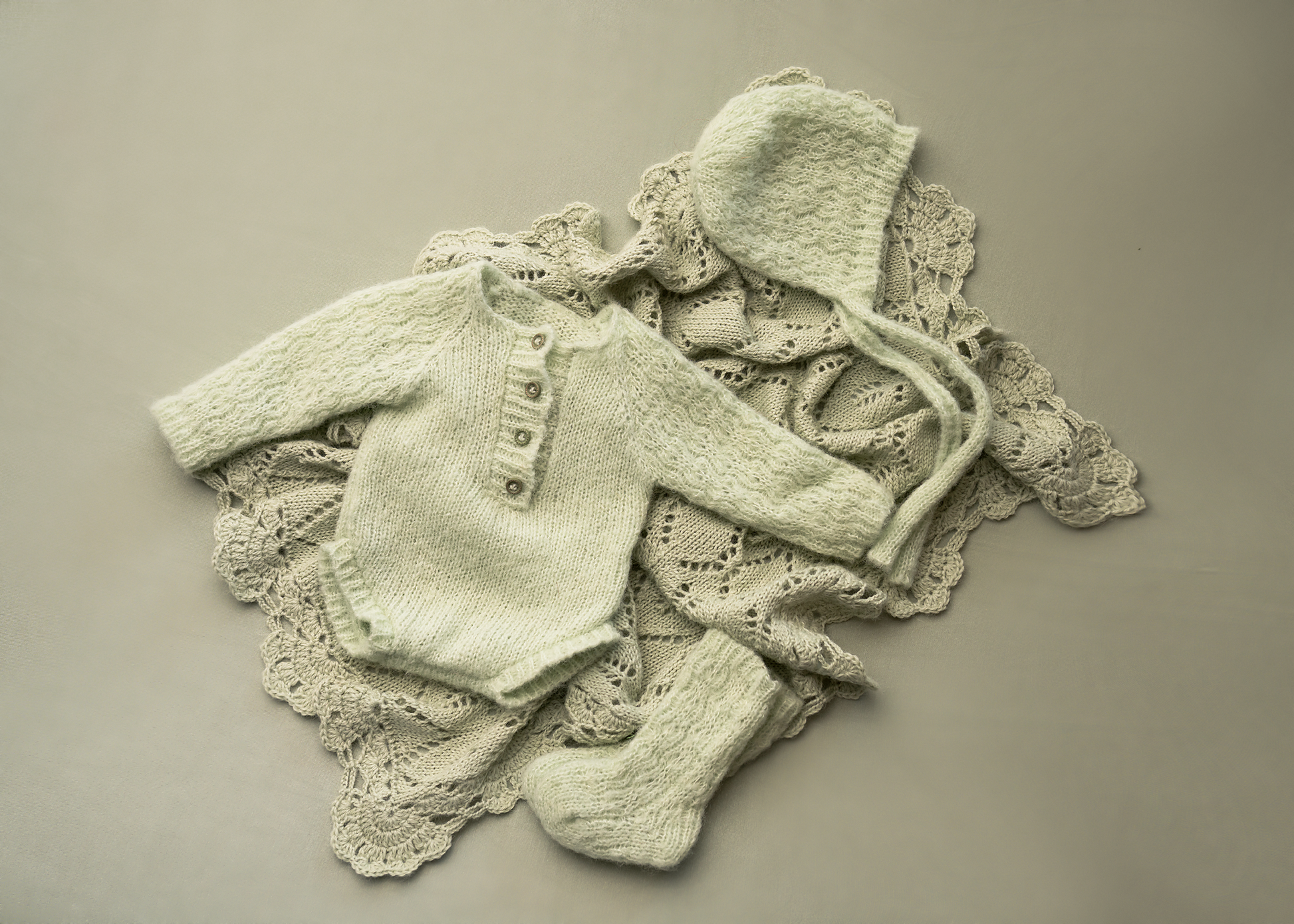 Set includes layer and matching bonnet